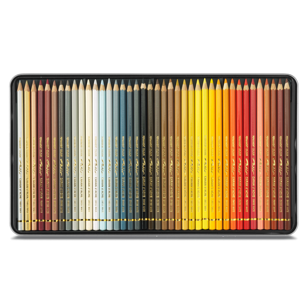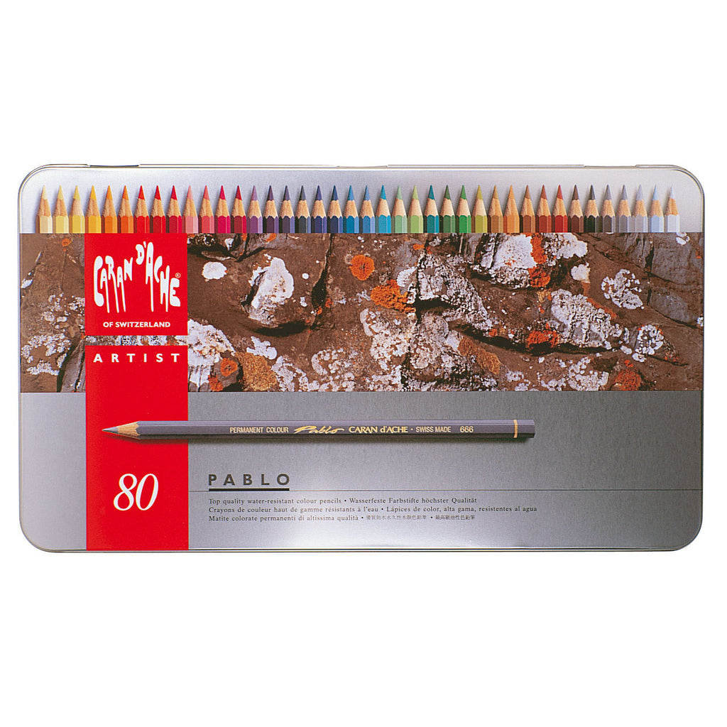 Die wasserfesten Farbstifte PABLO® die Caran d’Ache für Künstler und Illustratoren konzipierte, sind für Farbzeichnungen von höchster Qualität bestimmt. Die besonders präzisen, trockenen Minen eignen sich bestens für realistische Darstellungen. Sie haben einen Durchmesser von 3,8mm und ein hervorragendes Deckvermögen. Sie stauben nicht und bieten mit 120 Schattierungen eine besonders grosse Farbpallette. Künstler, Zeichner und Kunstlehrer können sich auf die außergewöhnlich gute Lichtbeständigkeit der Minen und ihre absolute Undurchsichtigkeit verlassen. Aufgrund ihres hohen Deckvermögens lassen sich die PABLO Farbstifte auf einer Vielzahl von Unterlagen leicht anwenden, von Papier und Karton mit verschiedenen Oberflächen bis hin zu Holzplatten. Dank ihrer dichten und samtigen Textur eignen sich die Minen für Schattierungen, Farbmischungen und Schichtmalerei.