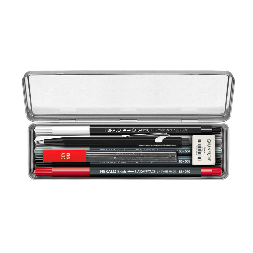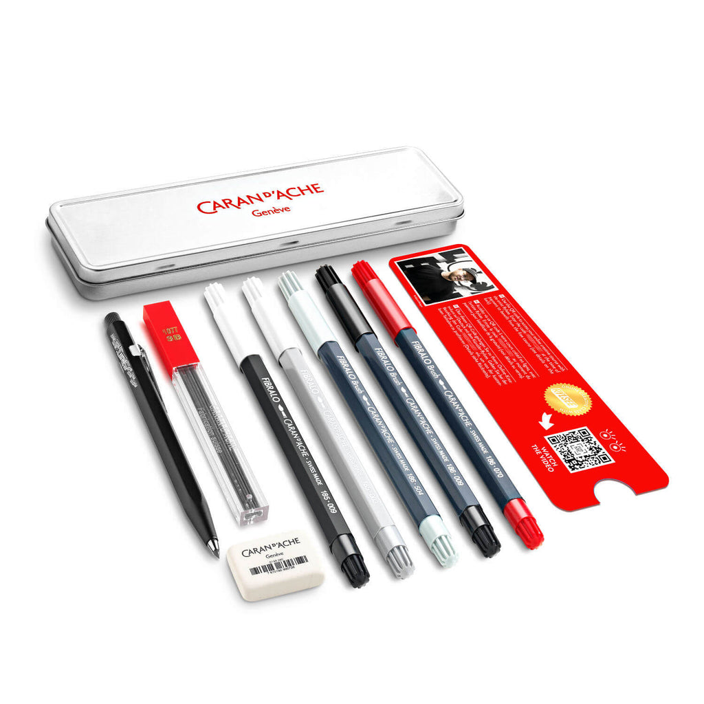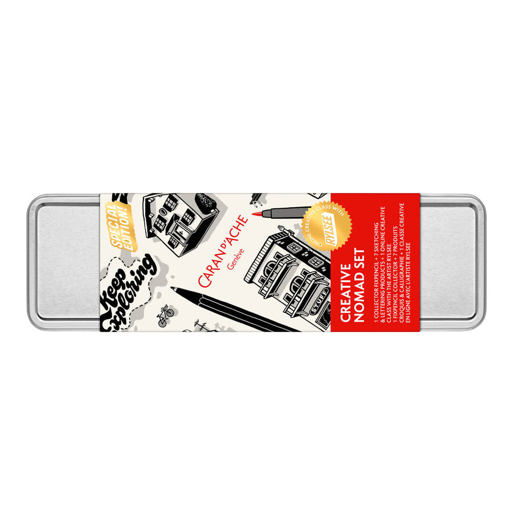 Caran d’Ache und der Schweizer Künstler Rylsee stellen gemeinsam eine Sonderausgabe mit den wichtigsten Werkzeugen dieses Meisters der urbanen Typografie vor. Dieses Reise- Sortiment gibt uns die Möglichkeit, unsere Kreativität im Urban-Lettering-Style des Künstlers ausleben – jederzeit und überall.