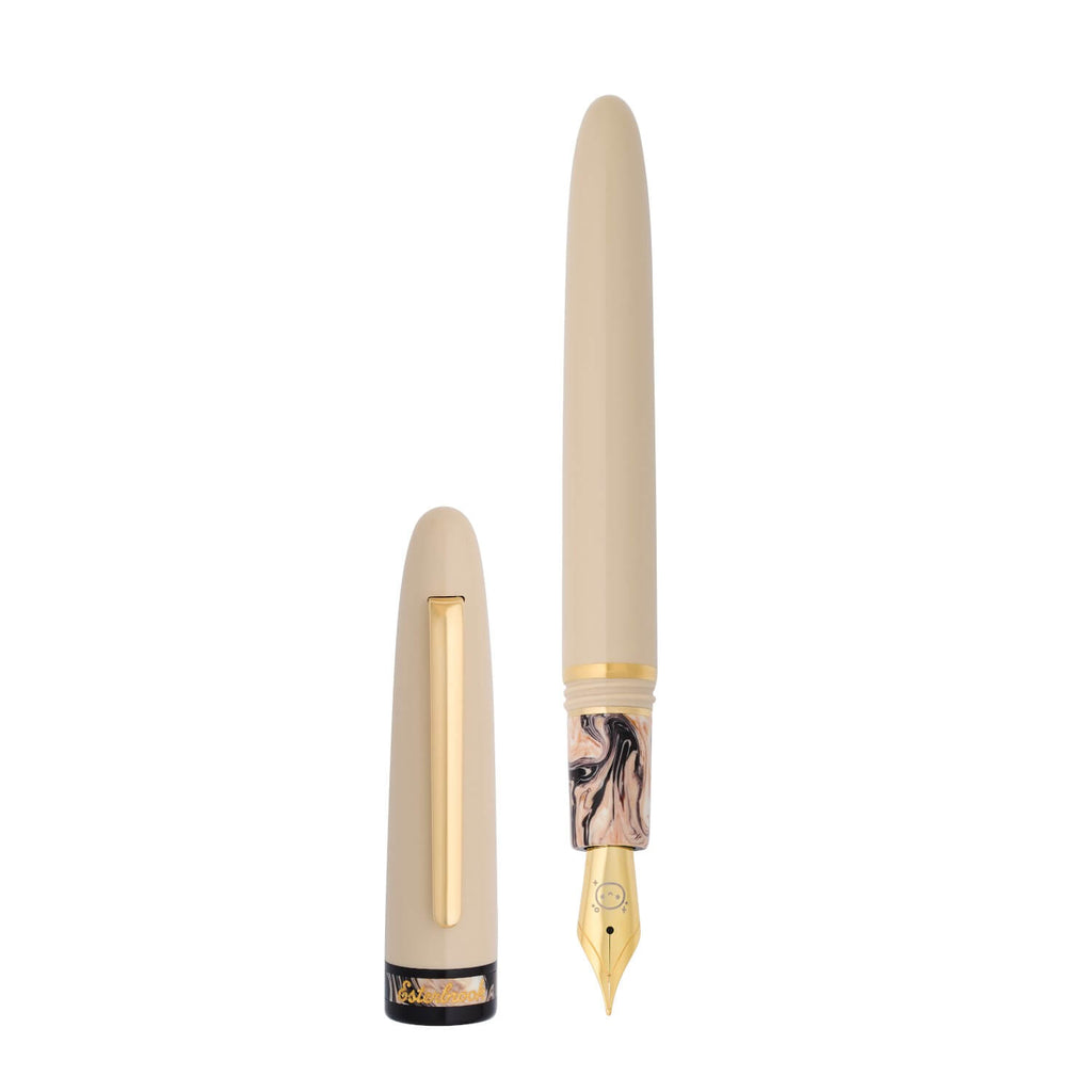 Schreiben mit Persönlichkeit: Dieser Füllfederhalter kombiniert ästhetische Eleganz mit spielerischem Design – sanfte Cappuccino-Töne, edle Golddetails und eine kunstvoll marmorierte Griffzone machen ihn zu einem echten Hingucker. Abgerundet wird das Set durch zauberhafte Illustrationen, die dich ermutigen, weiterzumachen, zu skizzieren und deine Ideen fließen zu lassen.