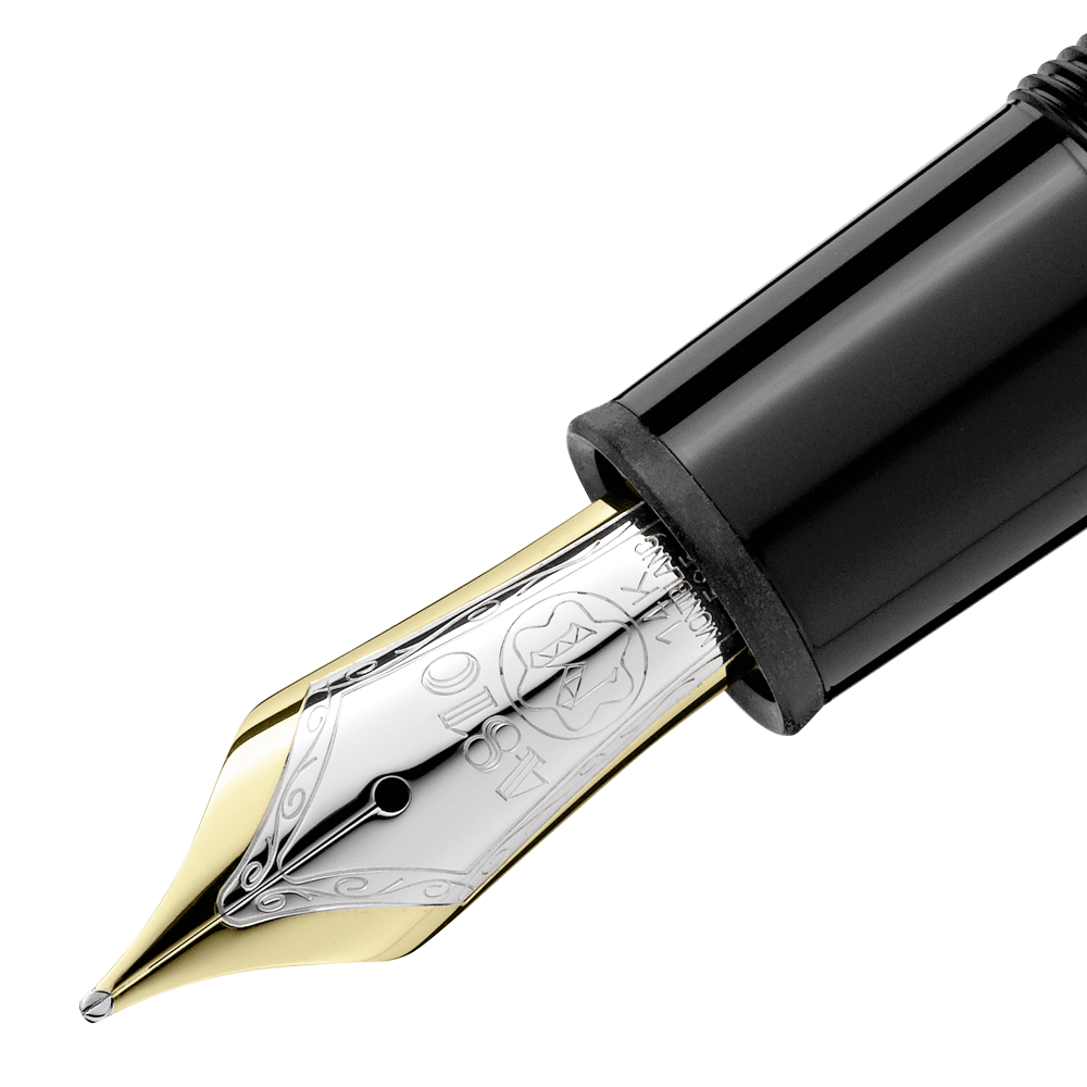 Besondere Sorgfalt gilt der Feder aus 14- oder 18-karätigem Gold mit Platinintarsie. Viele handarbeitliche Arbeitsgänge durchläuft die Feder, wobei dem Schliff eine besondere Bedeutung zukommt. Einzeln, von Hand eingeschrieben, verlassen die Federn das Werk. Als Gütesiegel ist der Goldfeder eines jeden MEISTERSTÜCKs die Zahl "4810" eingraviert, die Höhe des Montblancs.