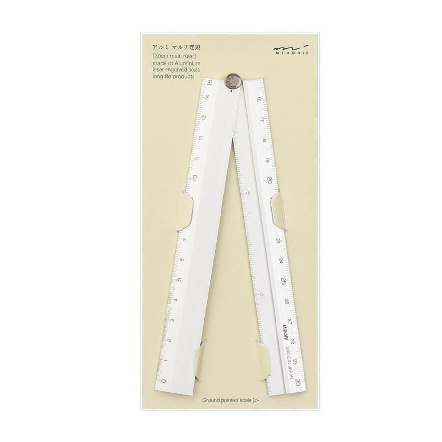 Das lasergravierte Lineal ist aus Aluminium und aufgeklappt 30cm lang.