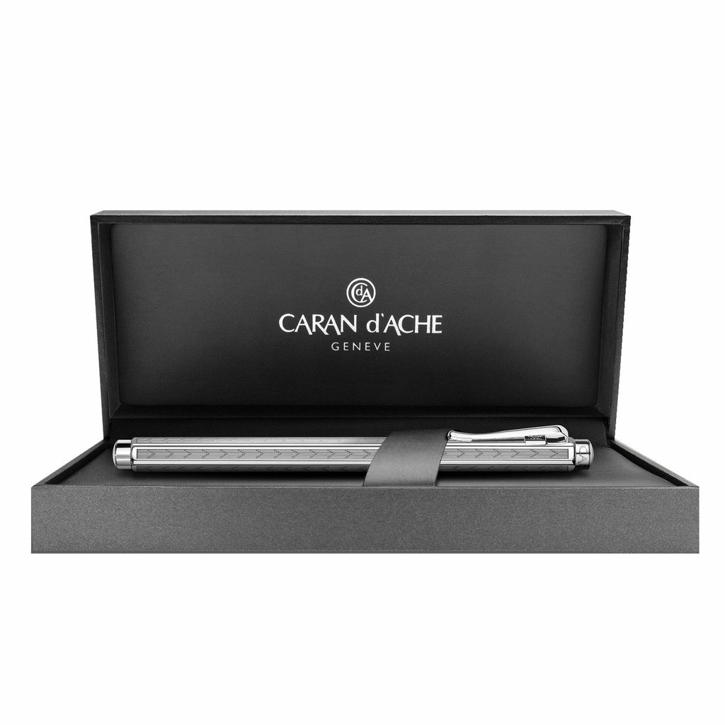 Die Kunst des Guillochierens zeigen uns die Modelle aus der Kollektion ECRIDOR aus dem Hause von Caran d'Ache. Die feingliedrigen architektonischen Linien erinnern an die Eleganz und den Glanz der Art Déco-Epoche. Zu der Zeit feierte Caran d’Ache seine ersten großen Erfolge. Mit den Blei- und Farbstiftschäften und dem legendären Fixpencil wurde die sechseckige Form fester Bestandteil bei der Produktentwicklung und die "Ecridore" mit ihren sechs Seiten aus Metall zum Markenzeichen von CdA.