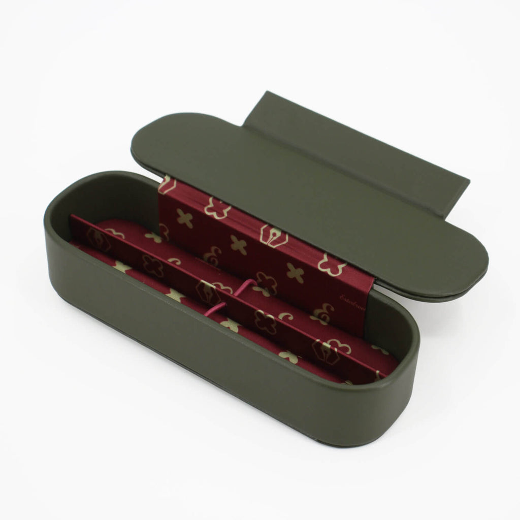 Just nook it... Der Pen Nook von Esterbrook ist eine feine "Garage" für Ihr(e) Schreibgerät(e). Jeder Pen Nook ist aus glattem Kunstleder gefertigt und hat ein farblich wunderschön gestaltetes Innenfutter.