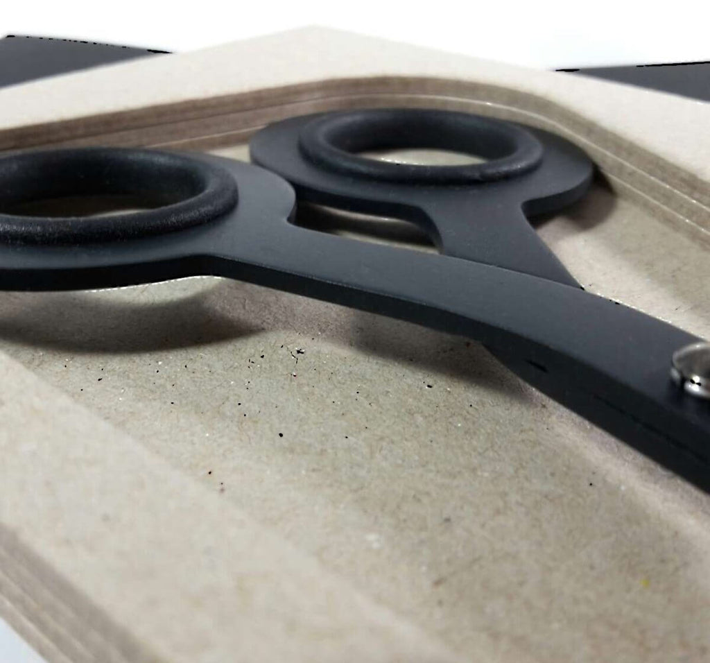 VON WEGEN AB IN DIE SCHUBLADE! Sie ist nicht nur schön und wirkt skulptural, sondern schneidet auch höchst präszise aufgrund der breiten Klingen und ihres ausbalancierten Gewichts. Ihr, erst auf den zweiten Blick sich offenbarendes Geheimnis, ist der Boxcutter. Damit können Sie Briefe oder Pakete öffnen. Ihre Base, der Fuß, ist magnetisch, so dass das Schneidewerkzeug mit quadratischen Klingenenden seinen festen Platz auf dem Schreibtisch hat, denn verstecken muss sich diese Schere nicht.