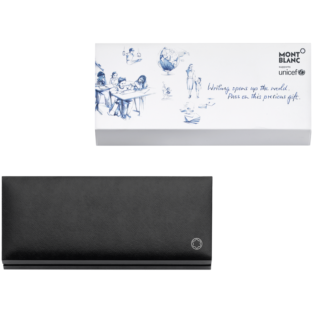 Die Schreibgeräte der Meisterstück UNICEF Resin LeGrand Kollektion werden von den ersten sechs Schriftzeichen geziert, die die Kinder in der Schule lernen. Der blaue Saphir in der Kappe ist das Symbol der Partnerschaft zwischen UNICEF und MONTBLANC.