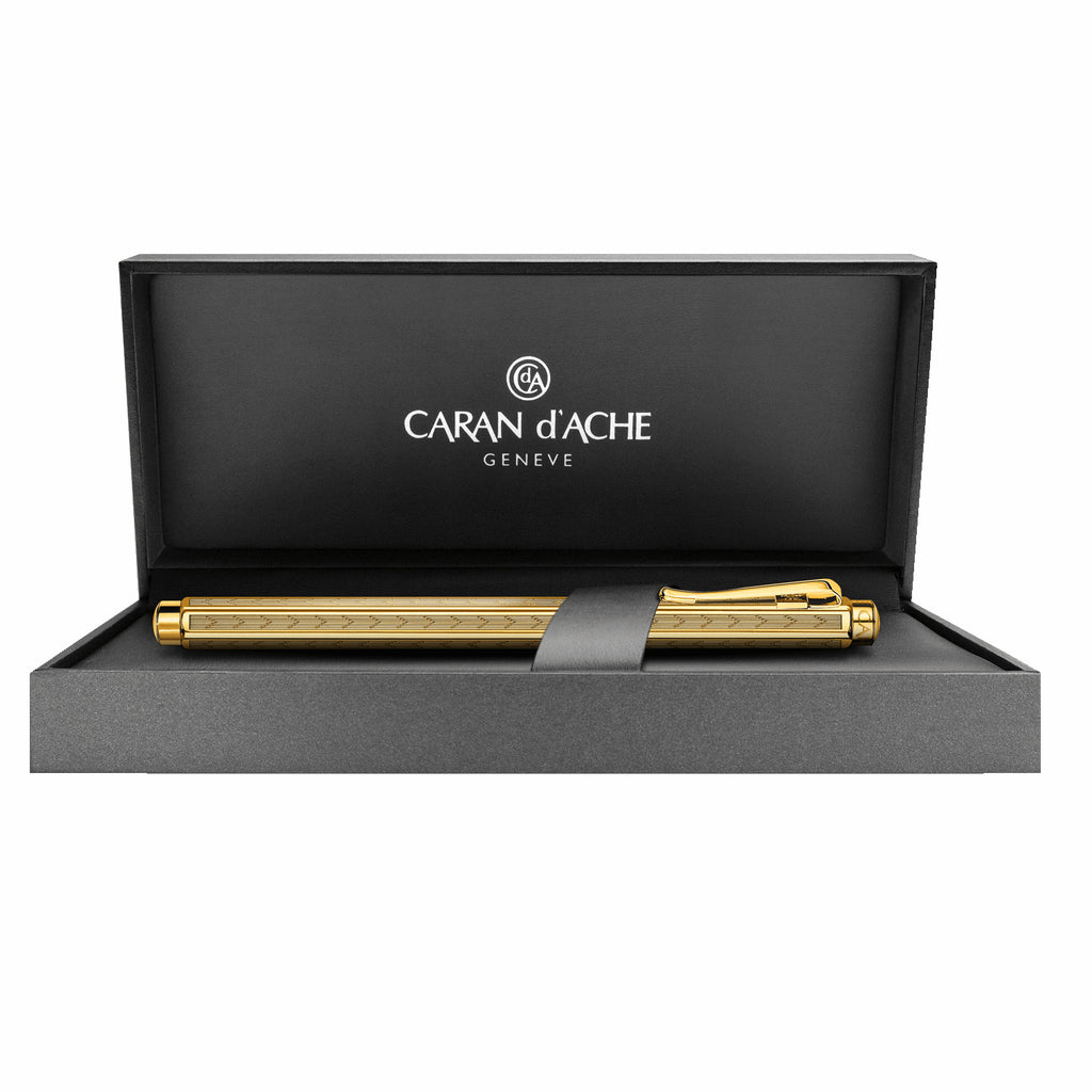 Seit 1947 gibt es die Kollektion ECRIDOR. Sie wird seit jeher aus Edelmetallen in der sechskantigen Form hergestellt. Die Guillochierung CHEVRON, ein Pfeilspitzenmuster, das per Diamantgravur erstellt wird, war die zweite Guillochierung, die Caran d'Ache für die Ecridor Schreibgeräte entwickelte.