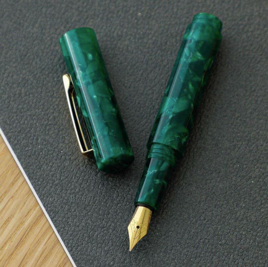 • Kappe und Korpus aus dunkelgrünem Acryl, marmoriert