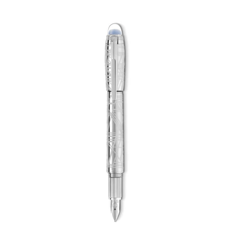 Starwalker SpaceBlue blickt jenseits des Planeten Erde in Richtung der Sterne und der Galaxis. Die betont maskuline und futuristische StarWalker Kollektion verleiht der Kappe und dem Korpus aus Metall einen neuen Look durch ein Design, das an die Struktur des faszinierenden Widmanstätten-Gefüges erinnert, eine der hypnotisierendsten Kreationen der Natur.