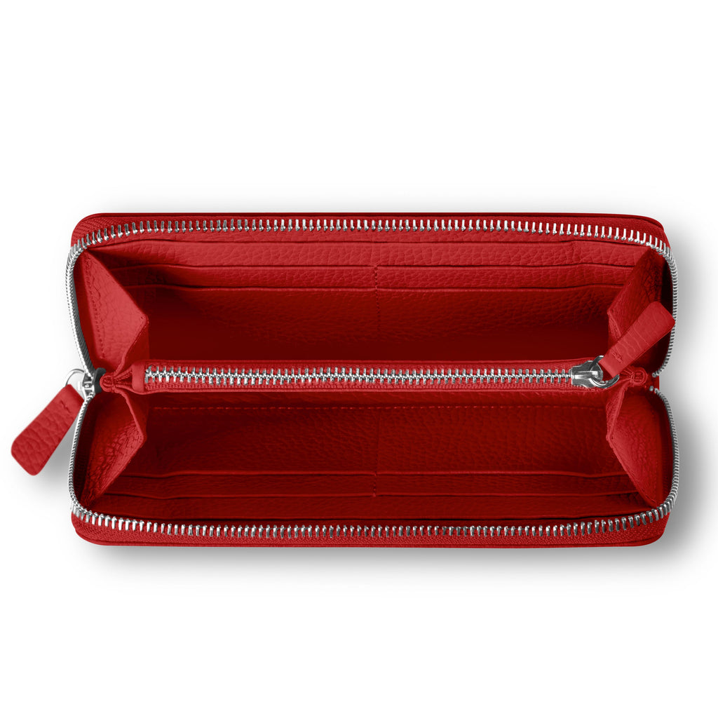 Zur Schreibgeräte-Serie LÉMAN hat Caran d'Ache die farblich passenden Kleinteile aus Kalbleder entwickelt. Das große Damen-Portemonnaie hat Platz für all die wichtigen Dinge, die die Damen im Alltag bei sich tragen müssen. Das Kalbleder ist leicht genarbt und hat eine angenehme, weiche Haptik. Die hochwertigen Reißverschlüsse sind aus Metall und laufen leicht um den Körper.  Die Froschfalten sind weit genug, um die Bedienung leicht zu machen. Test bestanden!