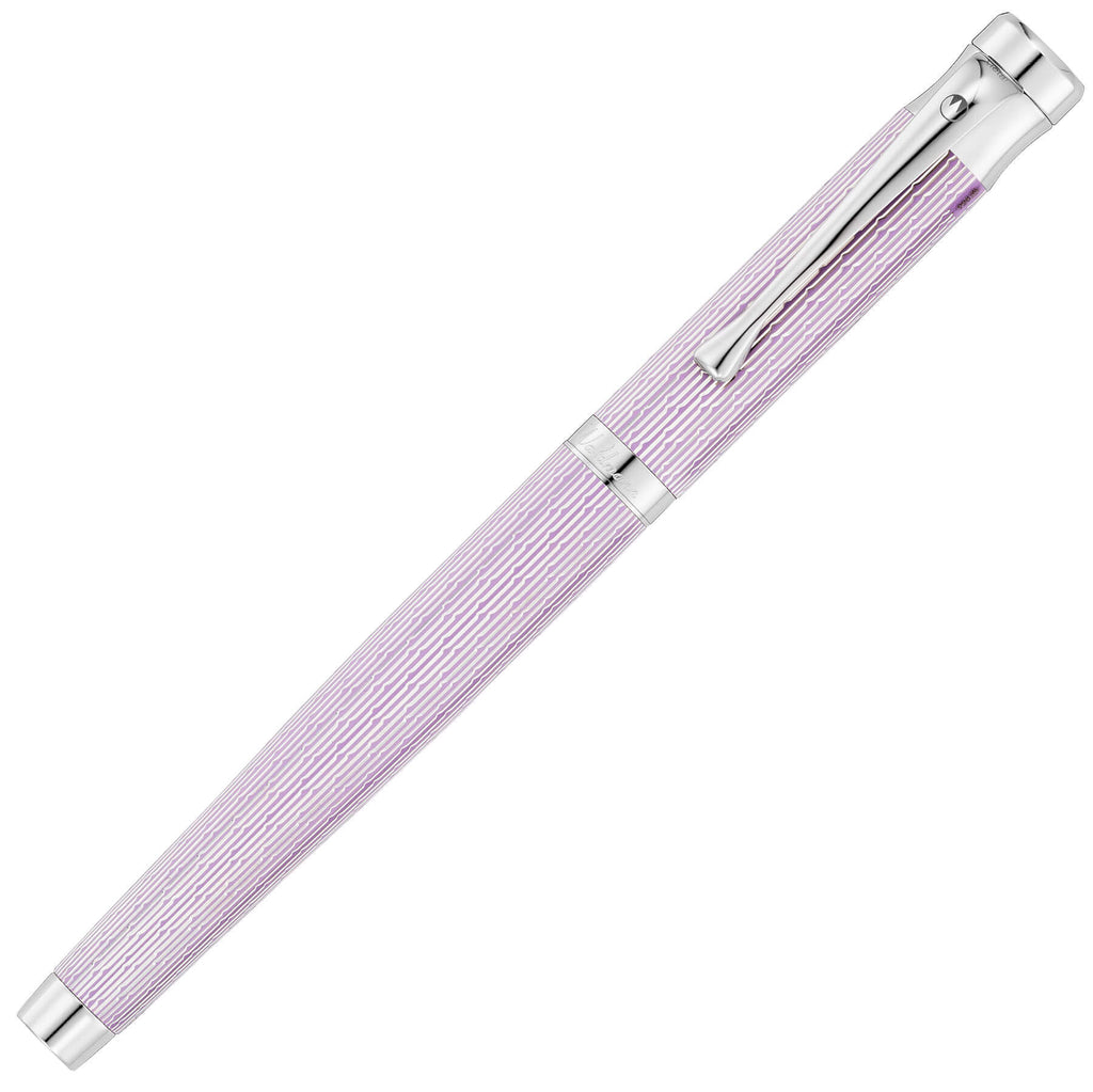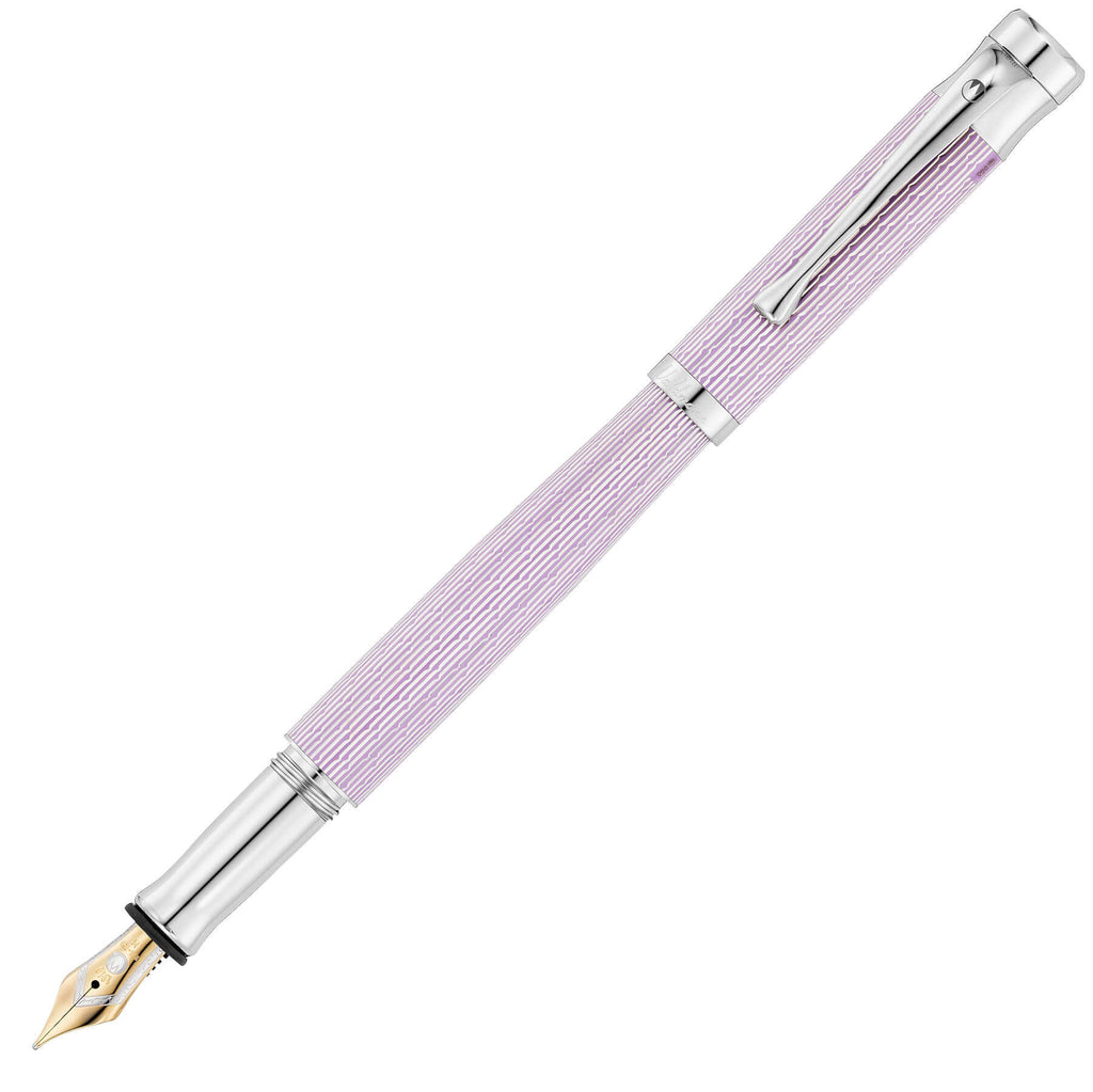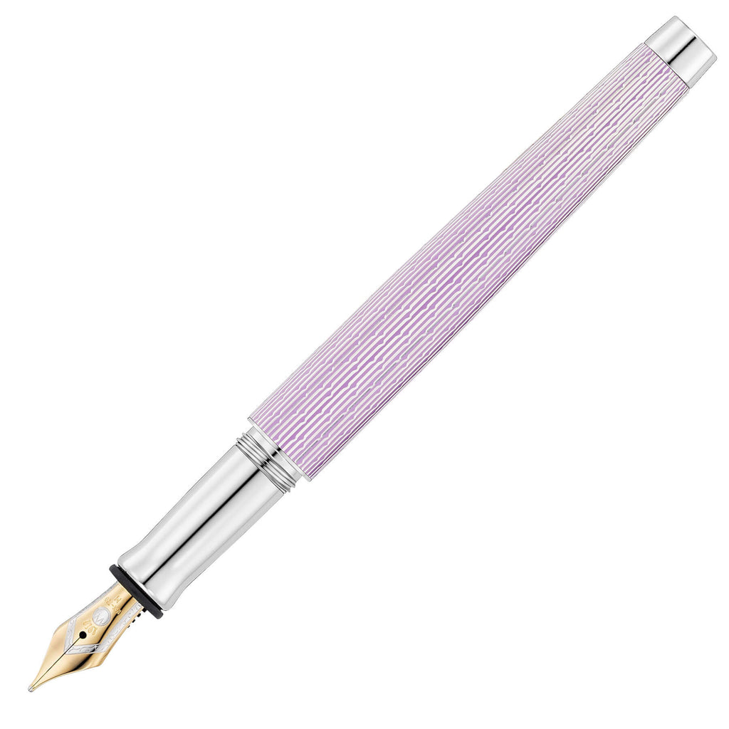 • Schaft und Kappe aus massivem Sterlingsilber , mehrschichtige Brillantlackierung fliederfarben, hochglanzpoliert