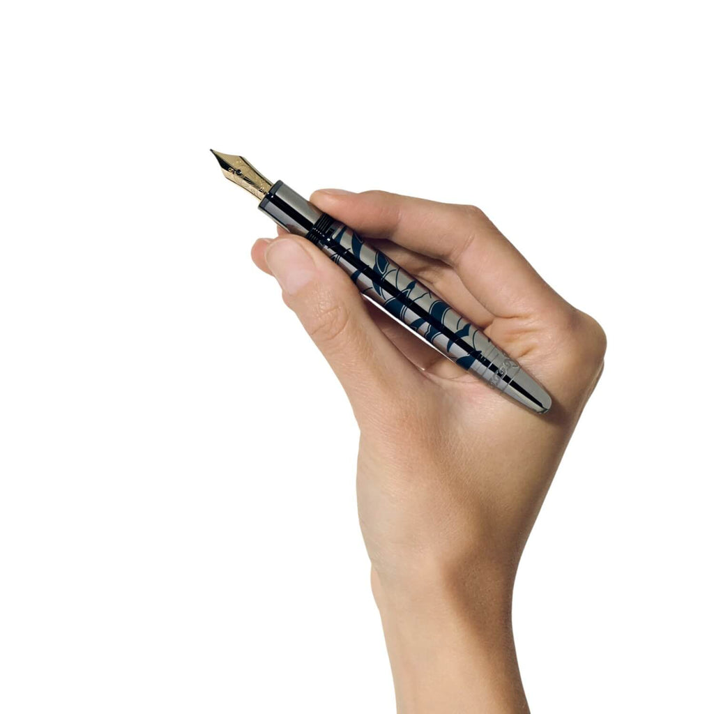 • Korpus und Kappe rutheniumbeschichtet mit lackiertem Muster in Dunkelblau