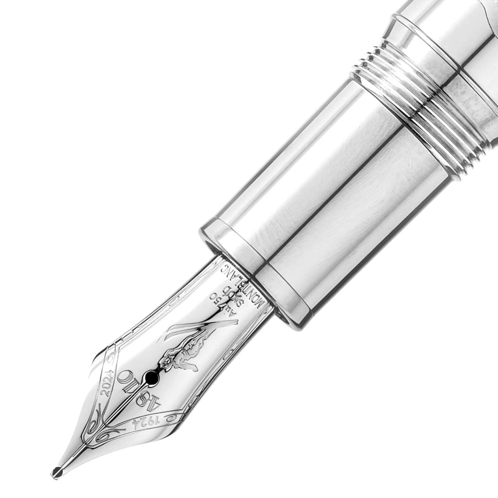 Diese Solitaire Edition besteht aus einer Kappe und einem Korpus, die beide platiniert sind und über eine gravierte Darstellung der Berglandschaft des Chamonix-Tals verfügen. Sie besitzt eine handgefertigte Feder aus massivem 750er / 18 K Gold, die als Verweis auf das historische Plakat der Olympischen Spiele aus diesem Jahr mit einem Skispringer verziert ist. Die Olympischen Ringe zieren als Teil des Olympic Heritage Logos in Form einer Gravur den Rings des Kappenkopfs. Umrandet werden sie von einem Blätterkranz, mit dem in der Antike die Häupter der Sieger gekrönt wurden. Die Kappe selbst verfügt über den gravierten Schriftzug „Olympic Games Chamonix 1924“ mit einer Umrandung, die der auf dem Einband des offiziellen Spieleberichts von damals nachempfunden ist. Der Jubiläumskappenring ist mit den beiden Zahlen „1924“ und „2024“ versehen, die an die Bedeutung dieser beiden Jahre erinnern. Gekrönt wird diese Edition vom Montblanc Emblem im Kappenkopf, das in korallefarbenes Edelharz eingelassen ist, der Signaturfarbe von Montblanc. International Olympic Committee – All Rights Reserved