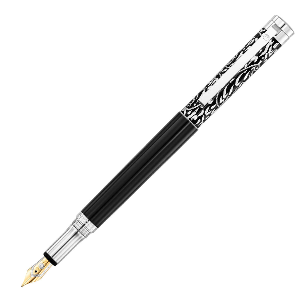 • Kappe aus massivem Sterlingsilber, schwarze Brillantlackierung, mit “Wiener Muster” - handgraviert